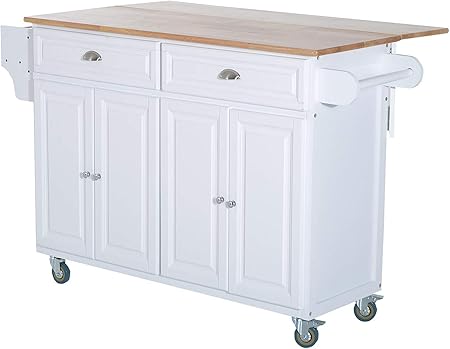 Homcom Carrello Da Cucina Classico Multiuso Con Ruote 2 Cassetti Legno Di Pino 146 75 91 5cm Bianco Amazon It Casa E Cucina