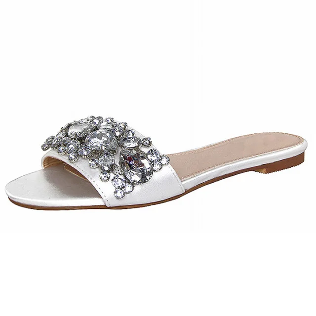 Kmeioo Chaussures D Ete En Cristal Pour Femmes 5 15 Bijou Diapositives Plates Robe En Satin Decontractees Collection Taille Americaine Aliexpress