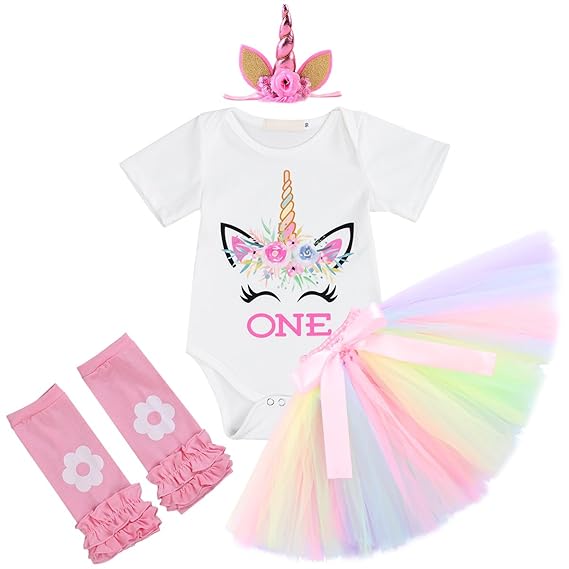 Iwemek Newborn Baby Girls Unicorn 1st Birthday Cake Smash Outfits Party Crown Flower Print Cotton One Bodysuit Romper Rainbow Tulle Tutu Skirt Leg Warmer Headband Summer Clothes A 12 18 Months Amazon In Clothing