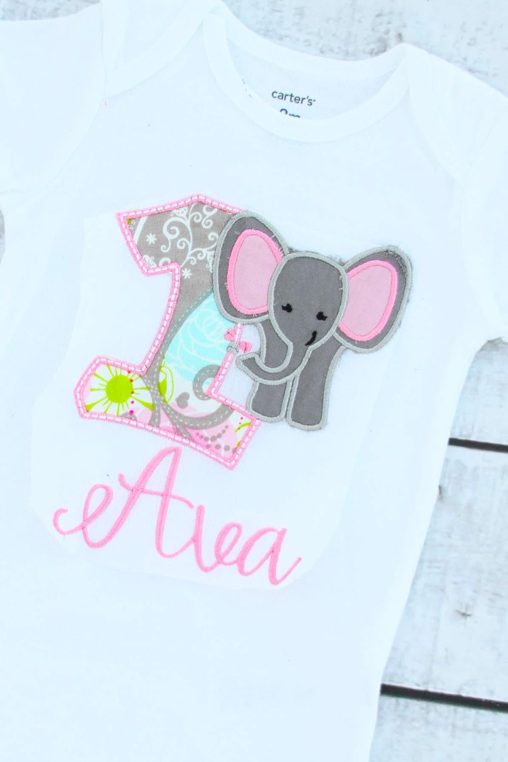 Baby Girl First Birthday Floral Elephant First Birthday Bodysuit Zoo Themed Floral Print Cake Smash Outfit One Year Outfit Birthday Handmade Products Baby