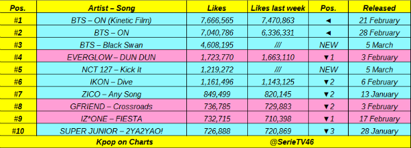 Kpop On Charts En Twitter Top 10 Most Likes Kpop Mv Released In 2020 On Youtube Bts Everglow Nct127 Ikon Zico Gfriend Izone Superjunior Obviously Only Official Mv In
