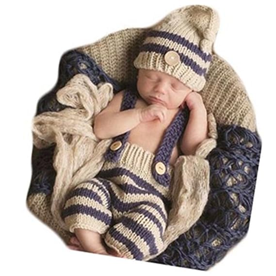 Baby Photography Props Newborn Boy Girl Photo Shoot Outfits Lovely Crochet Costume Infant Knitted Clothes Stripe Hat Pants Overalls Amazon In Clothing Accessories