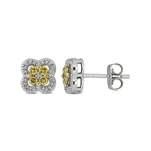 Tangelo 1 3 Carat T W Yellow And White Diamond Sterling Silver Quatrefoil Stud Earrings Walmart Com Walmart Com