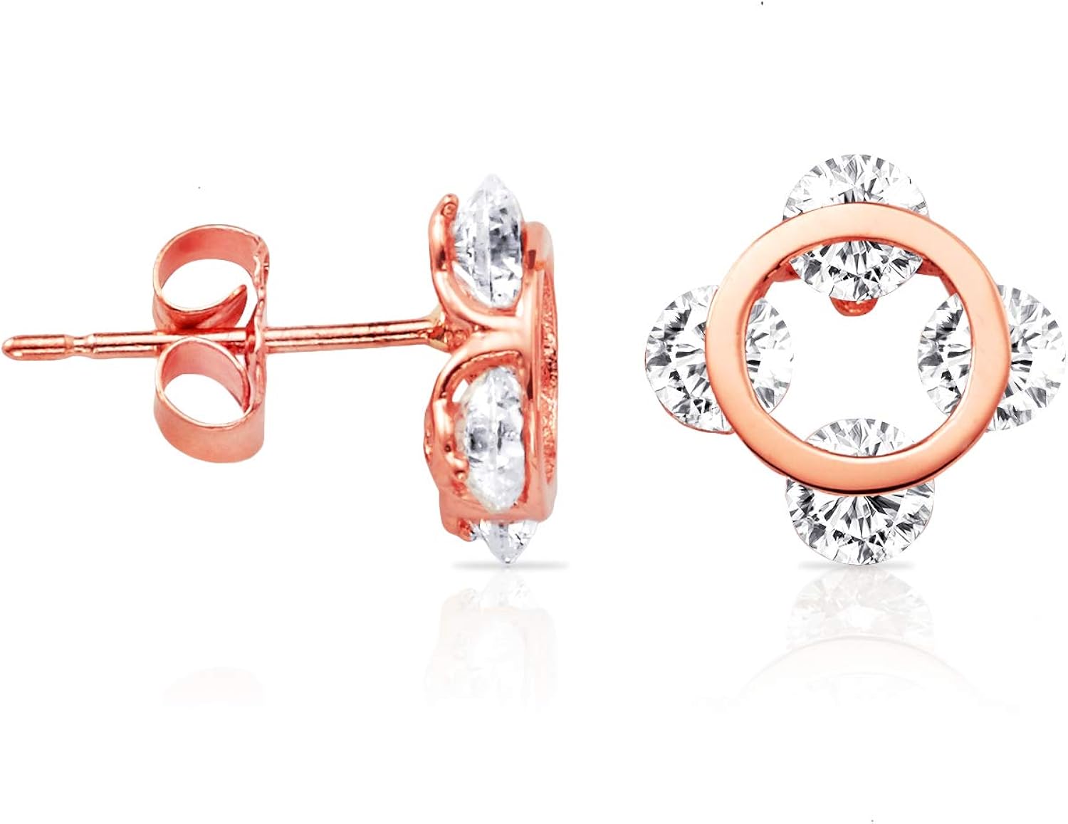 Real 14k Rose Gold Quatrefoil Stud Earrings With Czs Under Circle For Women Amazon Ca Jewelry