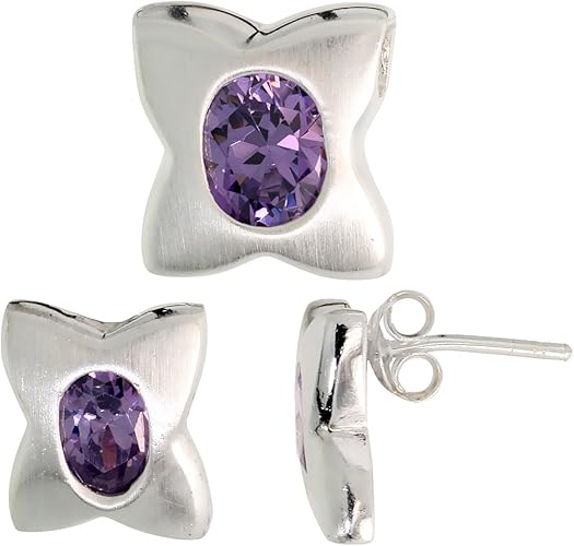 Amazon Com Sterling Silver Oval Cut Amethyst Purple Cz Quatrefoil Stud Earrings Pendant Set Brushed Finish Earring And Pendant Sets Jewelry
