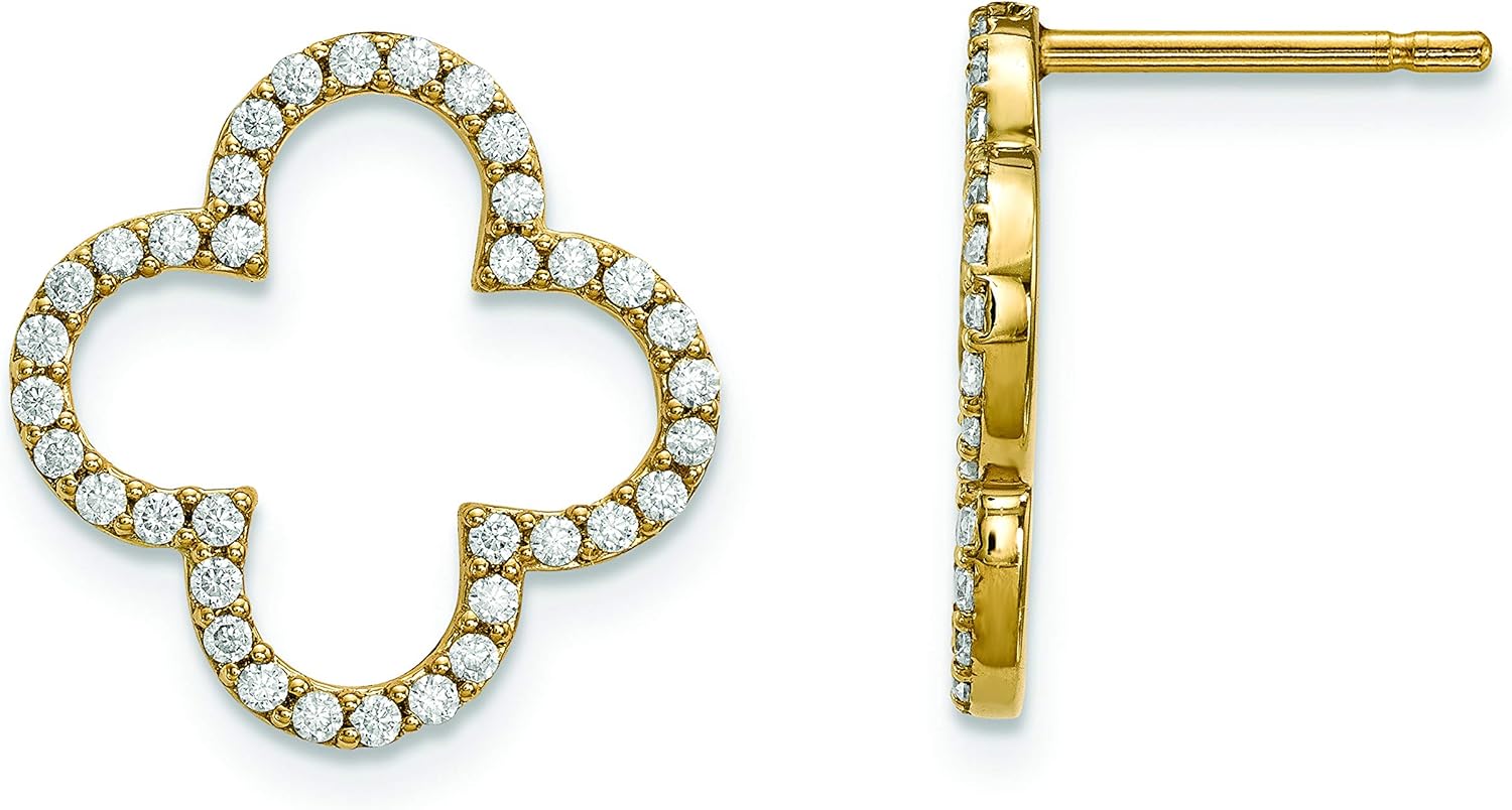 Amazon Com 14k Yellow Gold 15 Mm Diamond Quatrefoil Design Post Stud Earrings 0 50 Ctw Jewelry
